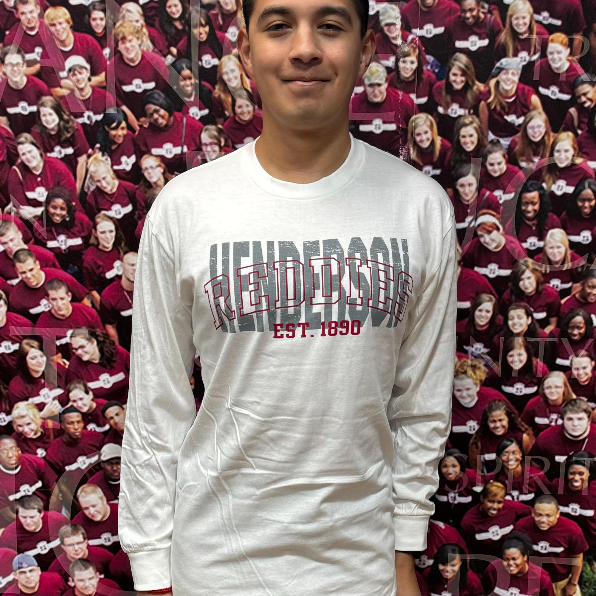 Show your support for the Reddies with this basic long sleeve Henderson Reddies tee! 100% Cotton