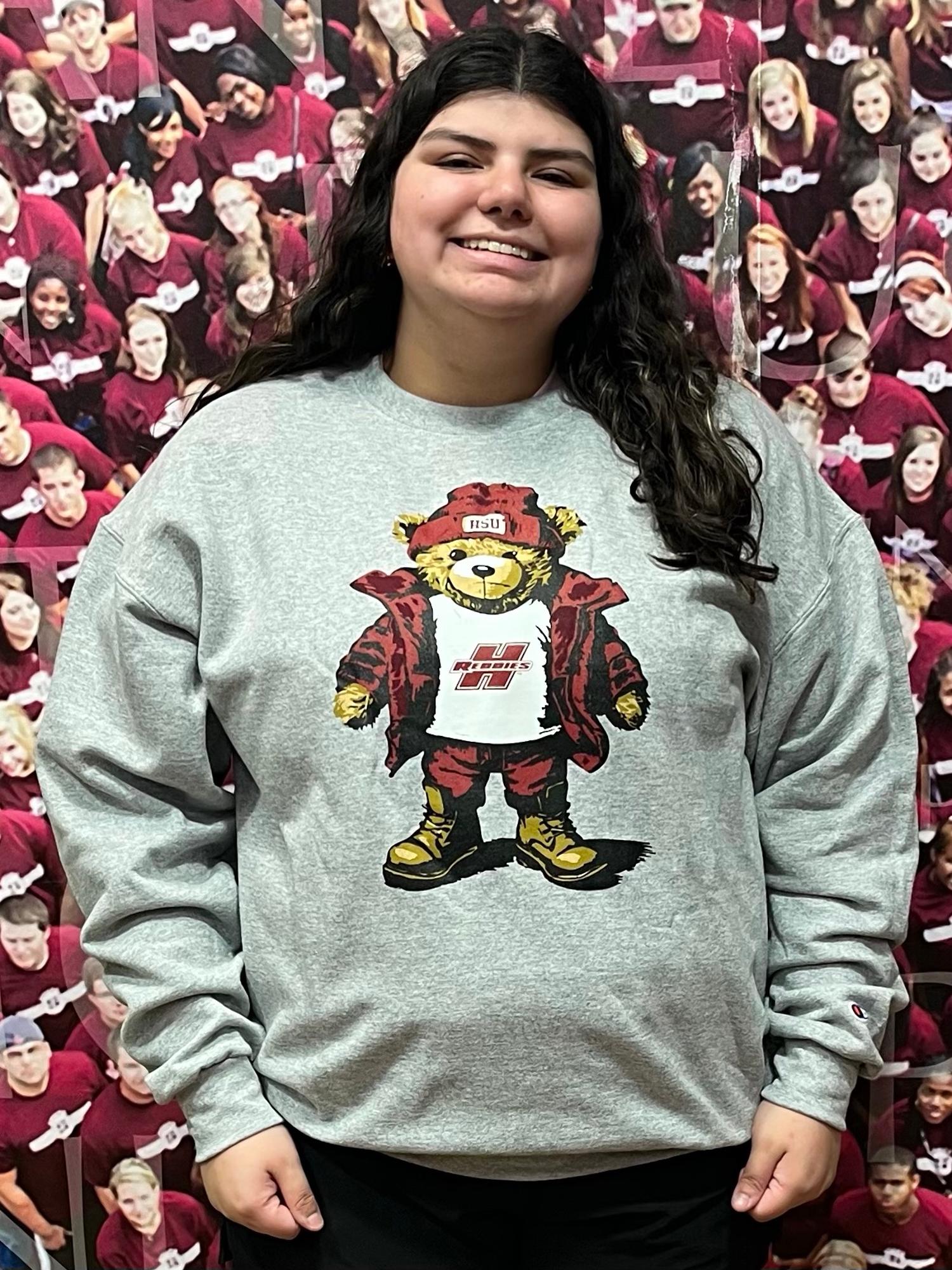 Grab yours today and wrap yourself in Reddies warmth! Henderson State University apparel, HSU Reddies fleece, teddy bear sweatshirt, powerblend crew.