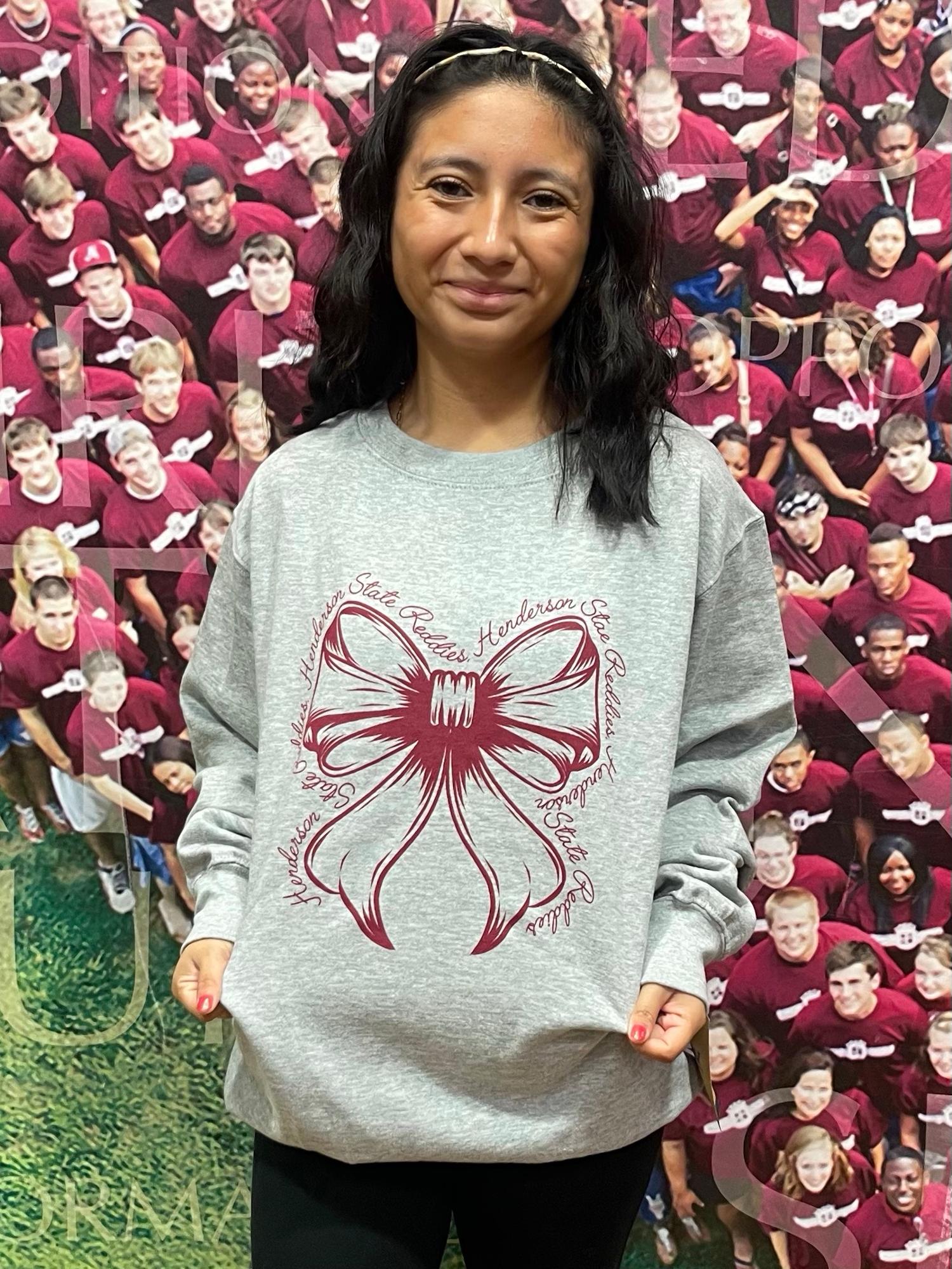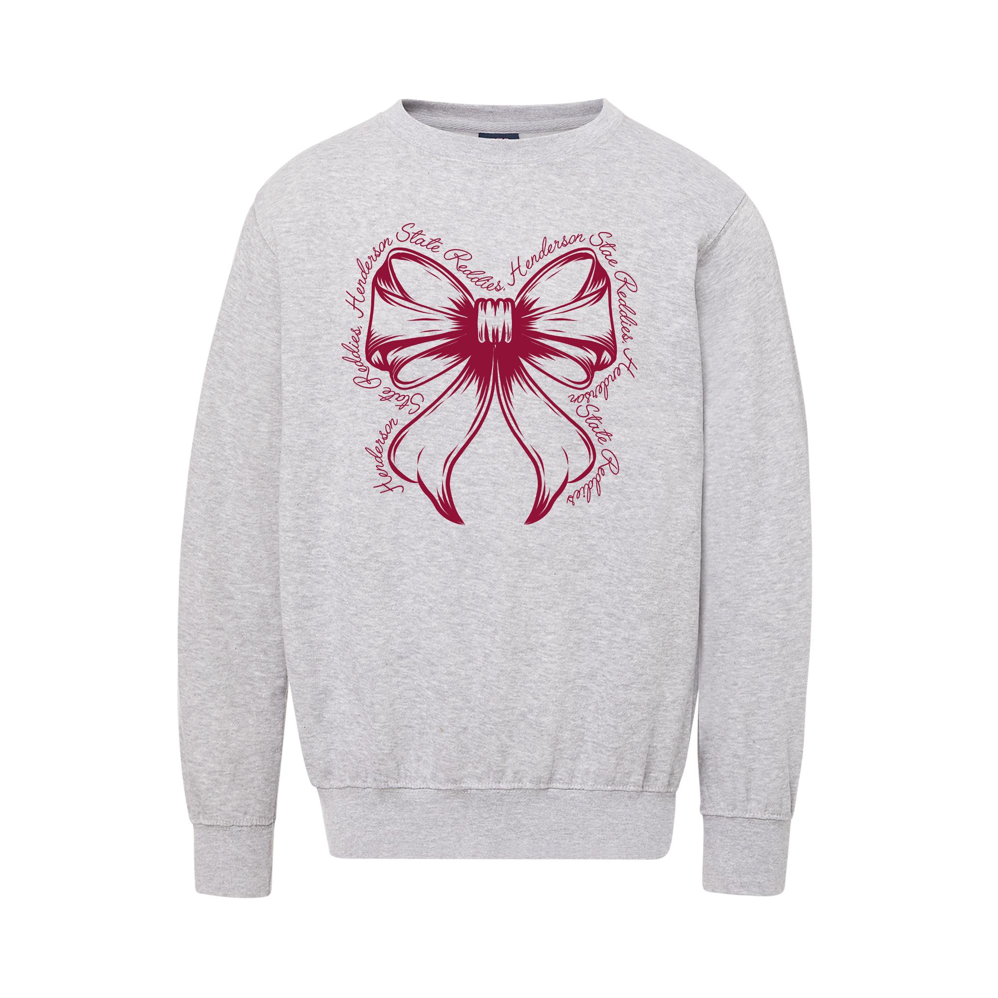 Henderson State Reddies Bow Crew Sweatshirt; cozy and girly for any occasion. 60% Cotton 40% Polyester