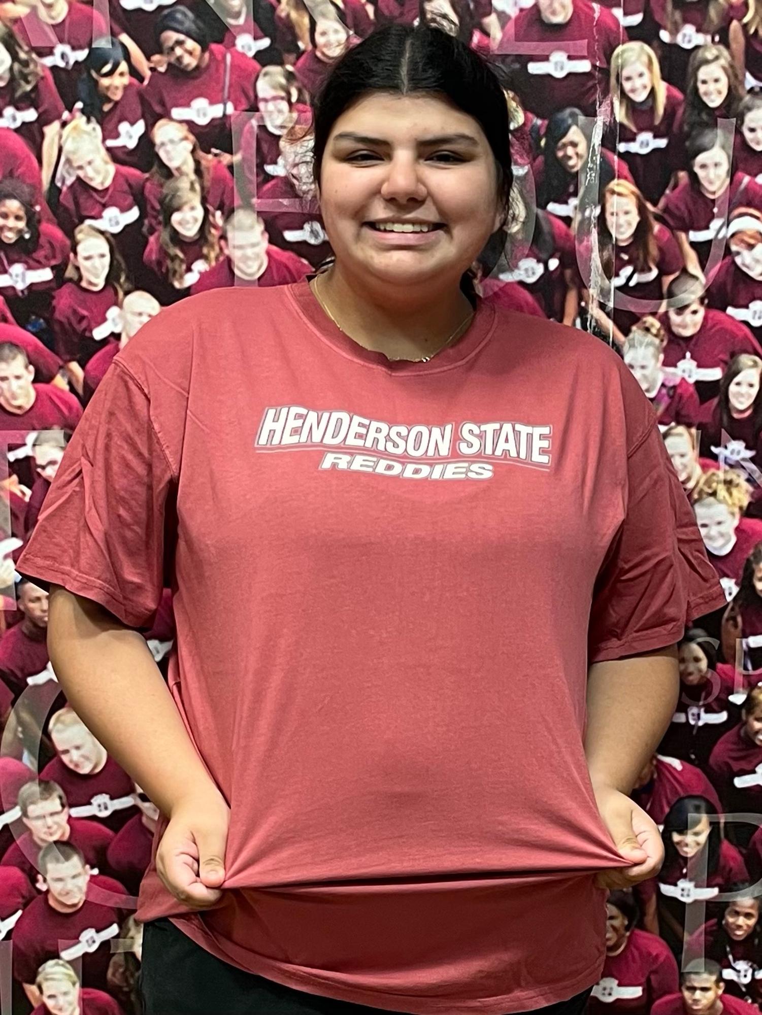 The bold Reddies font pops against the dyed fabric, showcasing your Henderson State loyalty in a fresh, athletic vibe.