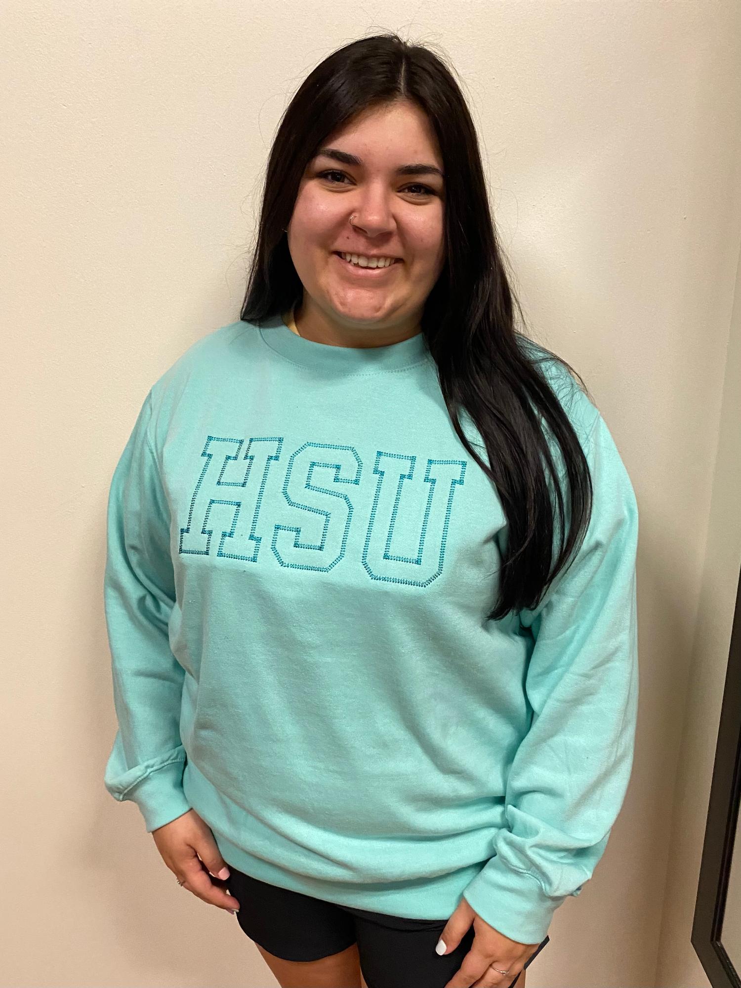Does your Henderson State Reddies fan-wear need a pop of color? This HSU fleece sweatshirt comes in the vibrant color of Oasis, a mint green, sure to add your own personal flare to any outfit!