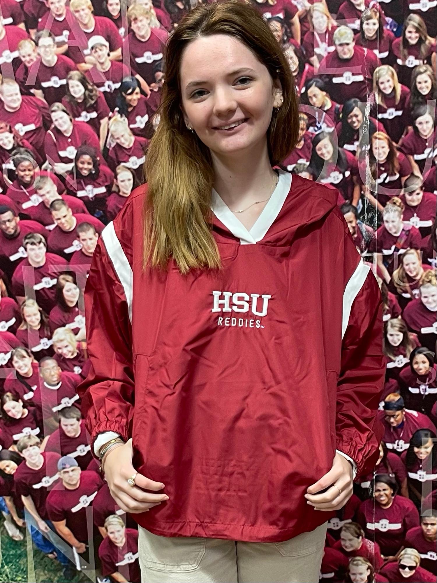 Brave the elements in style with the HSU Reddies Hooded Pullover Rain Jacket. This officially licensed jacket keeps you dry and shows your Reddies pride with its bold team colors and design. The comfortable hooded pullover is perfect for game days, campus life, or everyday wear. Made from durable, water-resistant 100% Polyester material, this jacket offers reliable protection from rain and wind. Stay warm and dry while showcasing your Henderson State University spirit. Order your HSU Reddies Rain Jacket today! Perfect for fans, students, and alumni alike. Show your Reddies pride no matter the weather. This rain jacket is a cropped, boxy fit.