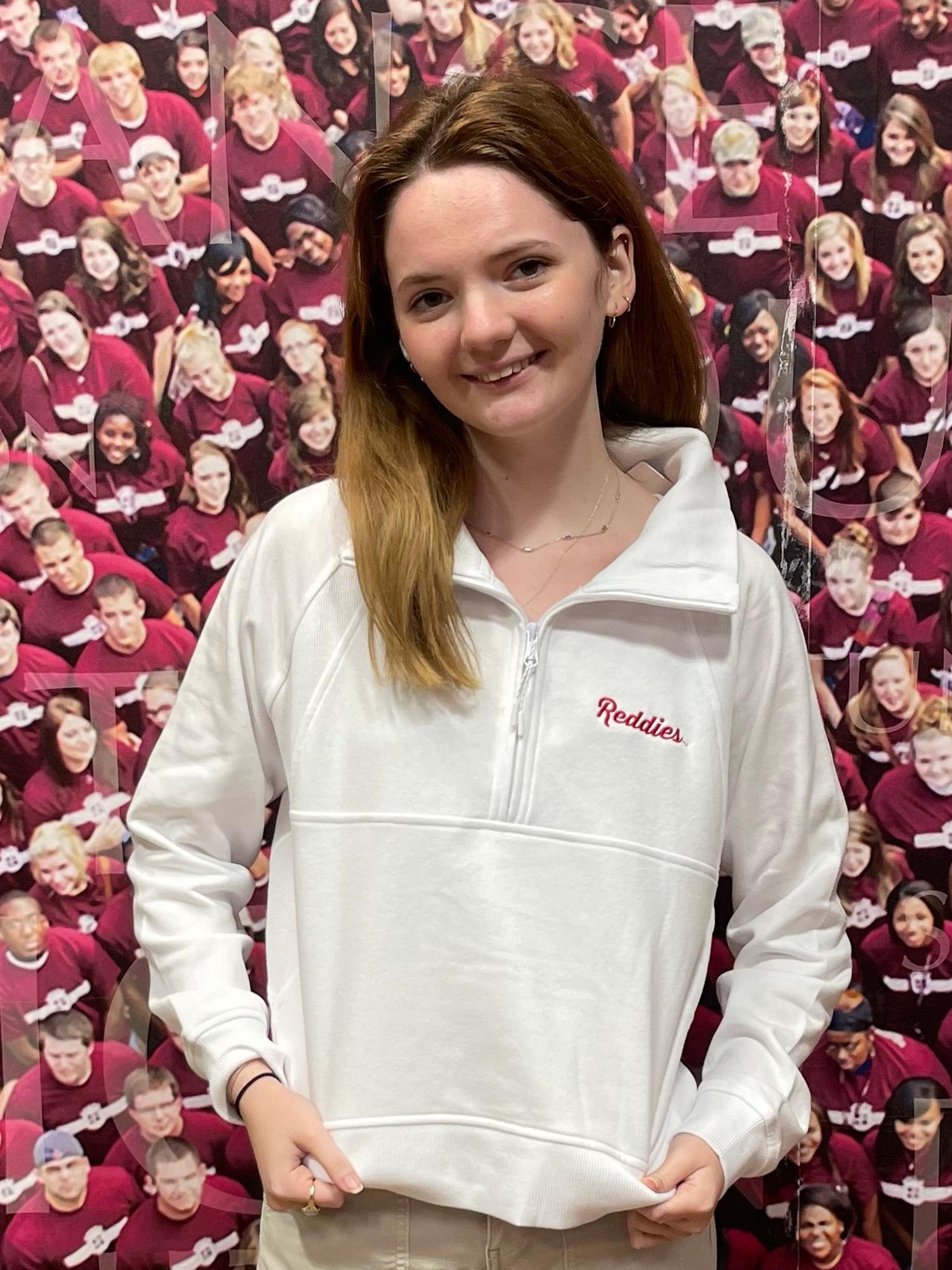 Feel the Reddie pride flow with the Reddies Chakra Half-Zip, a unique blend of comfort and collegiate pride. Crafted from premium, soft-to-the-touch 60% cotton 40% polyester fabric, it's perfect for layering on chilly game. The half-zip design offers versatile wearability. Show your Reddie spirit with this must-have piece. Go Reddies!
