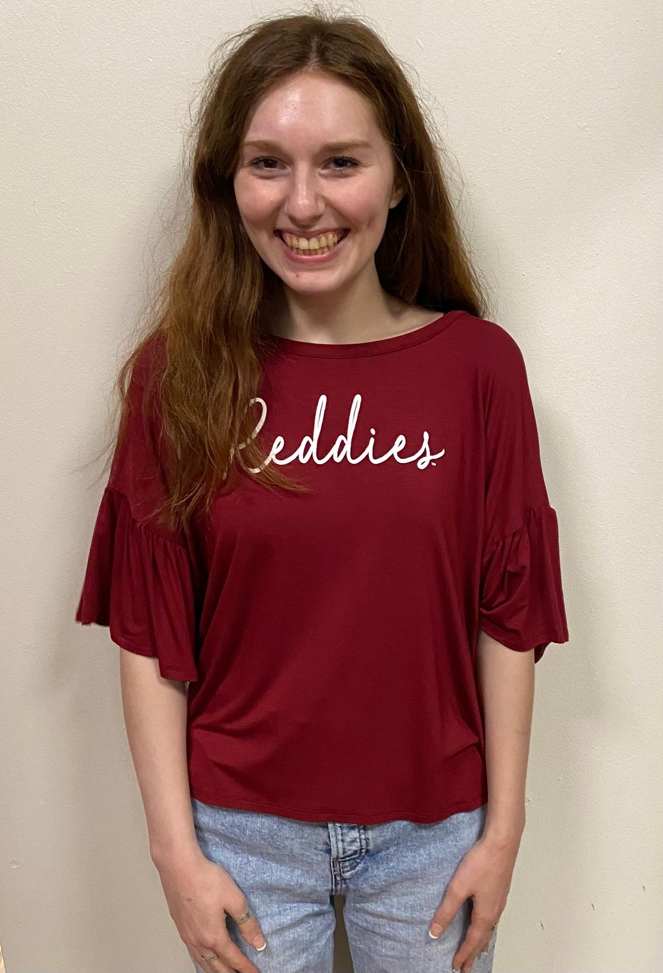 The Reddies Ruffled Piko top is perfect for those lazy days when you still want to be comfy, but cute. The flowy arms make for a comfy fit.