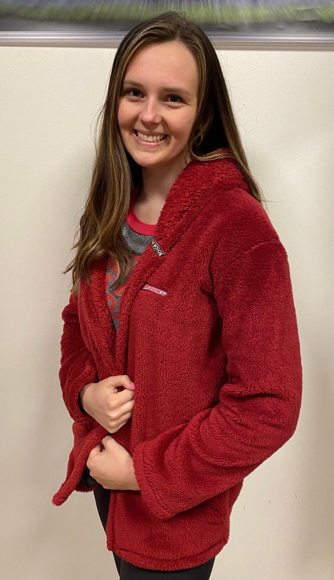 Originally $74.99! Wrap up in this Reddies Sherpa No Zip Hooded Cardigan! This cozy cardigan makes this the perfect accent for the true fan.