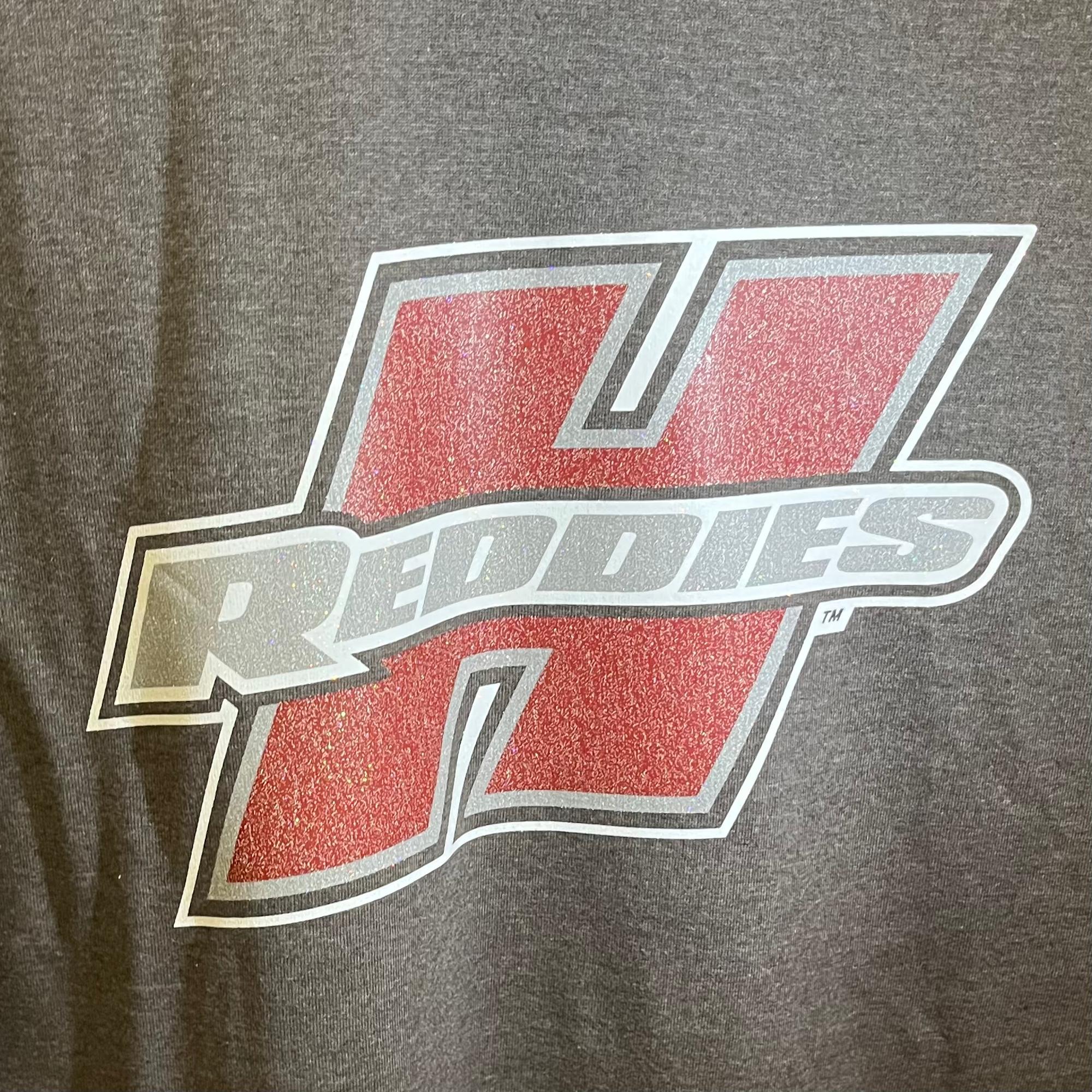 Does your Henderson State Reddies fan-wear need a pop of glitter? This HSU LS tee comes in Charcoal, with our Henderson logo in glitter . This top will definitely add your own personal flare to any outfit! 50% Cotton/50% Polyester